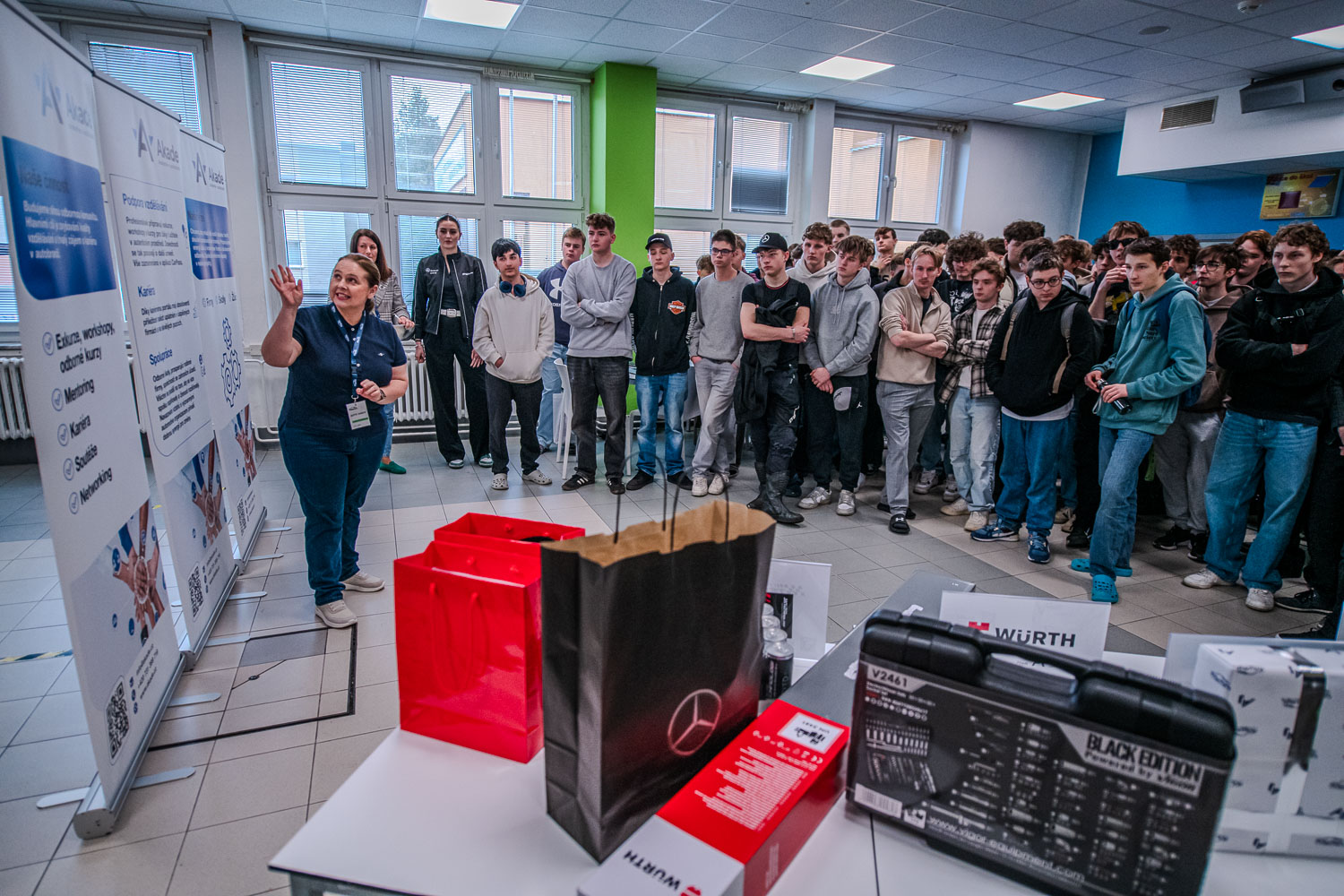 Od prezentací v zaplněných učebnách až po setkání v tělocvičně – program byl nabitý příležitostmi, kontakty a inspirací pro další kroky v kariéře. Doufáme, že si každý odnesl alespoň jeden nový nápad, kam po škole směřovat.