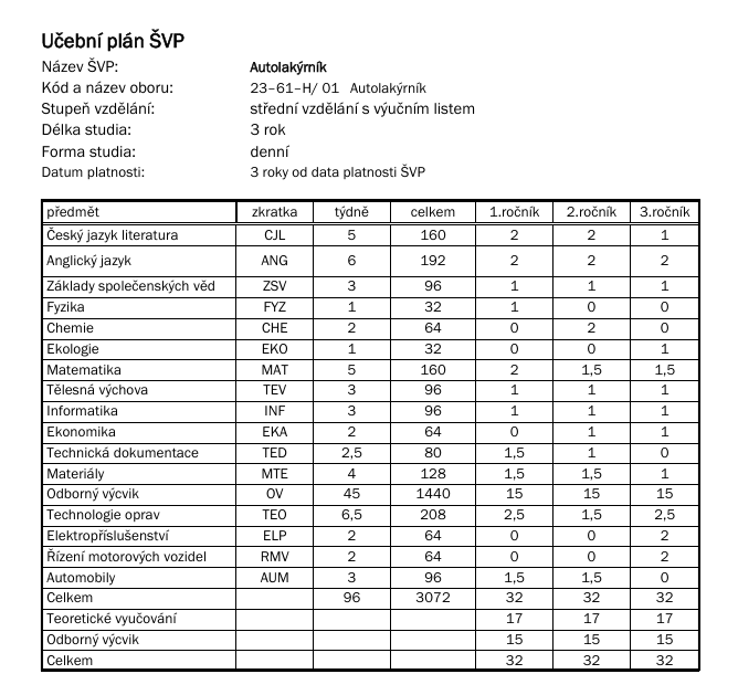 obor: Autolakýrník 23-61-H/01 | 15 studentů
