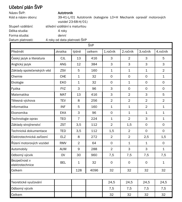 Na přihlášce pro obor Autotronik je nutné potvrzení lékaře o zdravotní způsobilosti ke studiu!